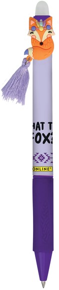 Op de drukknop van de pen vind je een leuk figuur, bijpassend bij het thema van de pen.