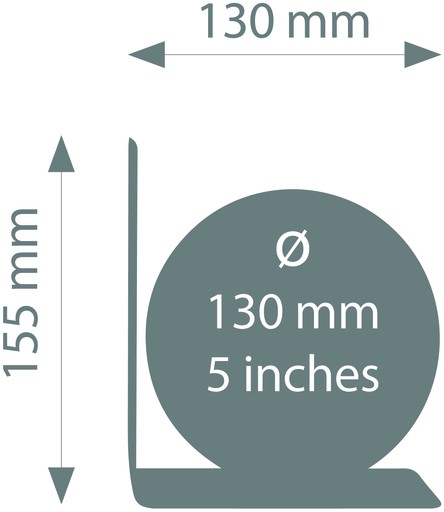De wereldbol heeft een diameter van 13 cm en een verfijnd ontwerp met zilverkleurige landoppervlakken en diepzwarte zeeën.