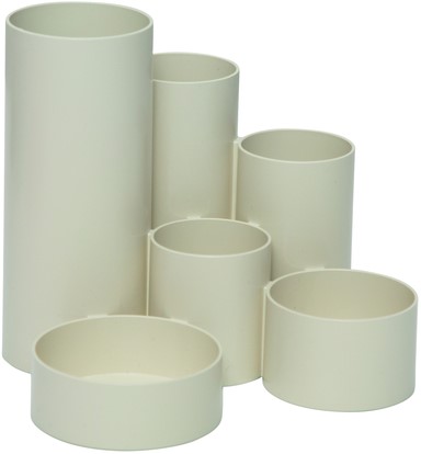 6 Ruime kokers in verschillende hoogten met een grotere doorsnede voor meer artikelen.