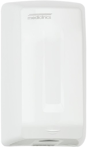 Handdroger van Mediclinics automatisch wit Ervaar de perfecte balans tussen comfort, hygiëne en efficiëntie met de automatische handdroger van Mediclinics. Deze krachtige, witte handdroger is ontworpen voor dagelijks gebruik in drukbezochte ruimtes zoals kantoren, scholen, horecagelegenheden en openbare toiletten. Dankzij de sterke luchtstroom van ca. 27 liter per seconde en een luchtsnelheid van 85 km/u droog je je handen in slechts 39 seconden. De ingebouwde sensor zorgt voor een volledig contactloze bediening, wat kruisbesmetting voorkomt en zorgt voor maximale hygiëne. Met een geluidsniveau van slechts 60 dB blijft de omgeving rustig, terwijl de luchttemperatuur van 47°C zorgt voor een aangenaam drooggevoel. Gemaakt van duurzaam ABS-kunststof en eenvoudig aan de wand te monteren. Kenmerken: