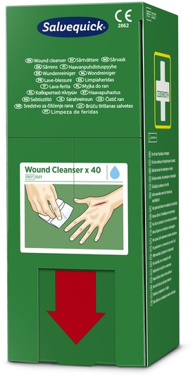 Inhoud: 40 st. Salvequick Wondreinigers 11x12 cm (Steriele fysiologische zoutoplossing).
