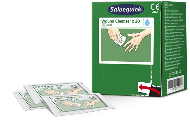 De Salvequick Wondreiniger past in het Cederroth eerstehulpstation. De Salvequick Wondreiniger vervangt watten en flessen wondreinigingsoplossing. Buigzaam en gemakkelijk te gebruiken. Goed beschermd in de verpakkingen. De reinigingsvloeistof bestaat uit een steriele fysiologische zoutoplossing.