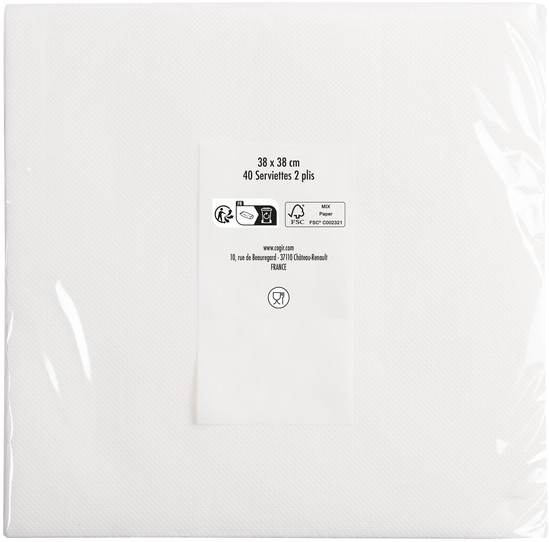 Pak van 40 2-laags micro gewafelde watten servetten - Formaat 38x38 cm Onze 2-laags servetten bieden optimaal comfort en geven uw tafel de elegante uitstraling die ze verdient, zowel op restaurant als thuis, bij elke gelegenheid: verjaardagen, huwelijken, doopfeesten, Kerstmis. Dankzij de dubbele micro wafelstructuur zijn ze dik en stevig genoeg voor al uw creatieve vouwwensen. Het formaat van 38x38 cm wordt vooral gebruikt bij buffetten, barbecues, en bij informele en chique etentjes aan tafel. Deze servetten zijn FSC®-gecertificeerd, gemaakt van grondstoffen afkomstig van verantwoord beheerde bronnen. Producten vervaardigd in Frankrijk en gecertificeerd als geschikt voor voedselcontact. Materiaal dat in de massa wordt gekleurd, waardoor de kleuren niet vervagen of verbleken bij blootstelling aan licht.