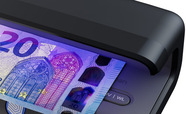 Valsgelddetector met krachtige UV- en witlichtdetectie.
