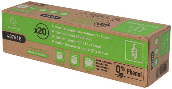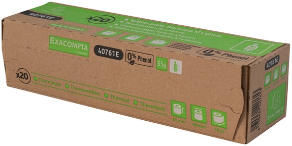 1 laag thermisch papier 55g/m2 fenol- en plasticvrij.