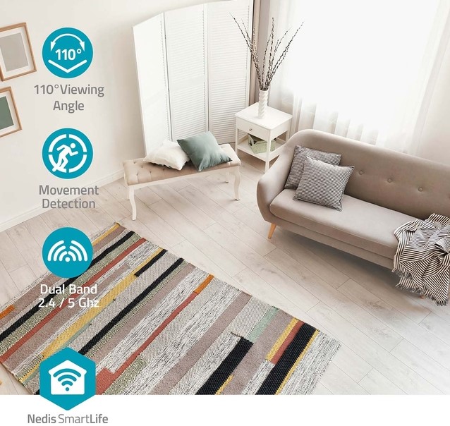 Deze gebruiksvriendelijke Wi-Fi Smart Indoor Camera met magnetische voet kan eenvoudig worden aangesloten op uw bestaande Wi-Fi-netwerk. De camera is ideaal om kamers van uw huis te bewaken en elk geluid of beweging op te nemen, of u nu thuis of onderweg bent. De Nedis SmartLife-app waarschuwt je bij beweging en geluid, zodat je op tijd kunt ingrijpen.