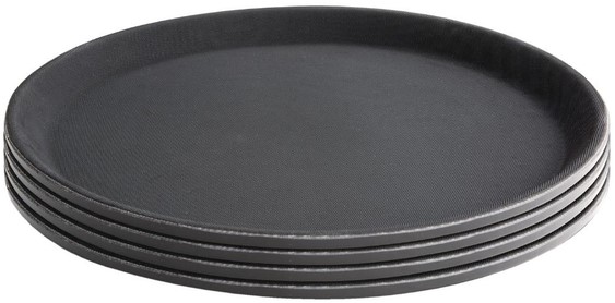 Voorkom morsen en knoeien tijdens het serveren van eten en drinken met dit ronde, polypropylene, antislip dienblad van Olympia Kristallon. Het blad heeft een antislip oppervlak waardoor glazen niet kunnen gaan schuiven en het risico op breuk en letsel aanzienlijk verkleind wordt. Het is gemaakt van hoge kwaliteit polypropyleen, is zeer slijtbestendig en bestand tegen afbladderen. Hierdoor gaat het lang mee. Omdat hij gemaakt is van polypropyleen is het blad zeer eenvoudig schoon te maken en hygiënisch te houden. Een must voor iedere koffiezaak, bar of café.