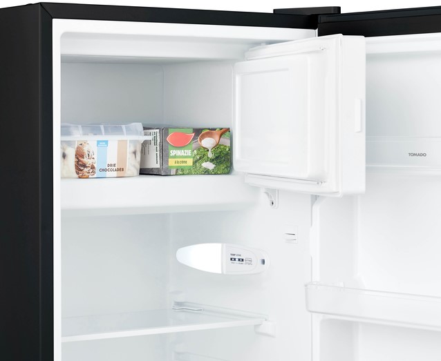 De Tomado TLT4702B is een vrijstaande koelkast met een totale netto inhoud van 93 liter. Dit is voldoende koelruimte voor huishoudens van 1 tot 3 personen. De inhoud van 94 liter zorgt ervoor dat jij al jouw boodschappen er keurig in kwijt kan. De koelkast is voorzien van 3 glazen draagplateaus, 1 groentelade en 1 flessenvak in de deur. Zodra je de deur van de koelkast opent, springt de binnenverlichting aan zodat je goed zicht hebt. Dankzij het lage geluidsniveau van 39 dB hoor je nauwelijks dat hij aanstaat!