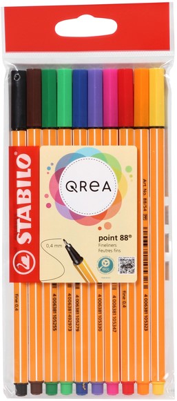 Fineliner STABILO point 88/10 Qrea F 10st ass 10 Stuk