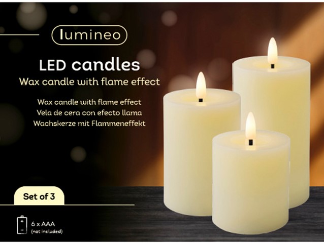 Kaarsenset LED Lumineo warm-wit 3 Stuk