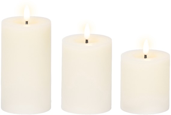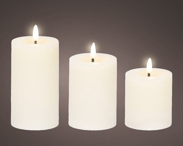Set van 3 kaarsen met een diameter van 7cm en een hoogte van 11.2, 15 en 19 m.