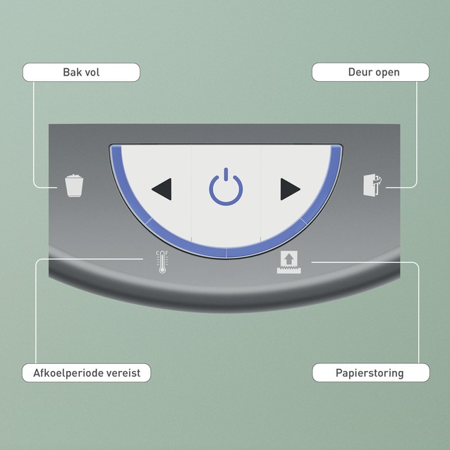 Intuïtief LED-display met waarschuwingsaanduidingen voor volle opvangbak, deur open, oververhitting en overbelasting.