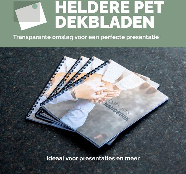 Transparante voorbladen, ideaal om te gebruiken als voorkant om uw ingebonden document te presenteren.