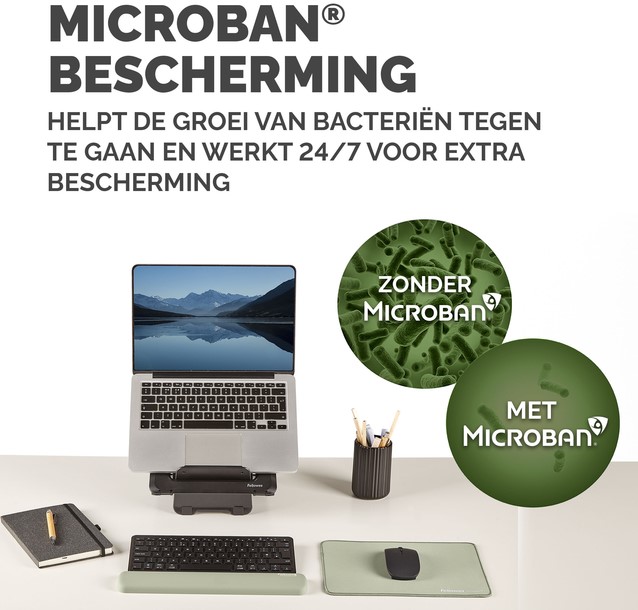 De HEX Cushion Technology™, waarvoor patent is aangevraagd, zorgt voor gelijkmatige ondersteuning en comfort tijdens het typen. De zachte, stofwerende polssteun heeft een mooie afwerking en zorgt voor een soepele typervaring. De ingebouwde Microban®-bescherming helpt bacteriën tegen te gaan en werkt 24/7 voor extra bescherming van het product. Gemaakt voor compacte (TKL) toetsenborden. 100% recyclebaar via het terugnameprogramma van Fellowes. Gemaakt om lang mee te gaan met 5 jaar beperkte garantie. Getest door FIRA International Ltd om te voldoen aan de ergonomische eisen van de Europese gezondheids- en veiligheidswetgeving: EN ISO 9241-5.