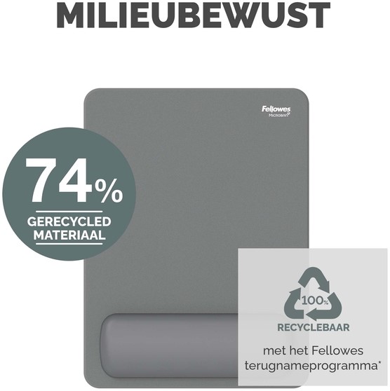 23% groter dan onze standaard muismat-polssteun om meer beweging te stimuleren en kleine, herhaalde bewegingen te verminderen die pijn in de pols kunnen veroorzaken. De HEX Cushion Technology™ (octrooi aangevraagd) combineert gelijkmatige ondersteuning met superieur comfort tijdens het muisgebruik. De zacht aanvoelende, stofwerende polssteun heeft een hoogwaardige afwerking en zorgt voor een soepele muiservaring. De ingebouwde Microban®-bescherming helpt de groei van bacteriën te voorkomen en werkt 24/7 voor extra productbescherming. Bescherm je bureau en verbeter de prestaties van je muis met deze muismat die geschikt is voor optische en lasermuizen. Gemaakt van 74% gerecycled materiaal en 100% recyclebaar met het terugnameprogramma van Fellowes. Gemaakt om lang mee te gaan met 5 jaar beperkte garantie. Getest door FIRA International Ltd om te voldoen aan de ergonomische eisen van de Europese gezondheids- en veiligheidswetgeving: EN ISO 9241-5.