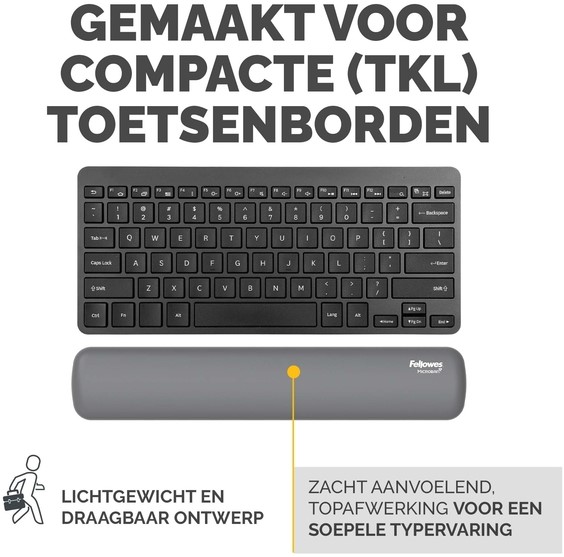 De HEX Cushion Technology™, waarvoor patent is aangevraagd, zorgt voor gelijkmatige ondersteuning en comfort tijdens het typen. De zachte, stofwerende polssteun heeft een mooie afwerking en zorgt voor een soepele typervaring. De ingebouwde Microban®-bescherming helpt bacteriën tegen te gaan en werkt 24/7 voor extra bescherming van het product. Gemaakt voor compacte (TKL) toetsenborden. 100% recyclebaar via het terugnameprogramma van Fellowes. Gemaakt om lang mee te gaan met 5 jaar beperkte garantie. Getest door FIRA International Ltd om te voldoen aan de ergonomische eisen van de Europese gezondheids- en veiligheidswetgeving: EN ISO 9241-5.