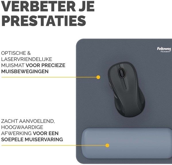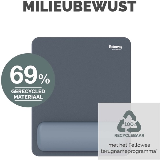 De HEX Cushion Technology™, waarvoor patent is aangevraagd, zorgt voor een gelijkmatige ondersteuning en supercomfort tijdens het muisgebruik. De zachte, stofwerende polssteun heeft een mooie afwerking en zorgt voor een soepele muiservaring. De ingebouwde Microban®-bescherming helpt de groei van bacteriën tegen te gaan en werkt 24/7 voor extra bescherming van het product. Bescherm je bureau en verbeter de prestaties van je muis met deze muismat die geschikt is voor optische en lasermuizen. Gemaakt van 69% gerecycled materiaal en 100% recyclebaar met het terugnameprogramma van Fellowes. Gemaakt om lang mee te gaan met 5 jaar beperkte garantie. Getest door FIRA International Ltd om te voldoen aan de ergonomische eisen van de Europese gezondheids- en veiligheidswetgeving: EN ISO 9241-5.