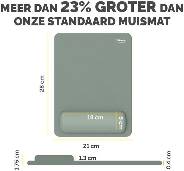 23% groter dan onze standaard muismat-polssteun om meer beweging te stimuleren en kleine, herhaalde bewegingen te verminderen die pijn in de pols kunnen veroorzaken. De HEX Cushion Technology™ (octrooi aangevraagd) combineert gelijkmatige ondersteuning met superieur comfort tijdens het muisgebruik. De zacht aanvoelende, stofwerende polssteun heeft een hoogwaardige afwerking en zorgt voor een soepele muiservaring. De ingebouwde Microban®-bescherming helpt de groei van bacteriën te voorkomen en werkt 24/7 voor extra productbescherming. Bescherm je bureau en verbeter de prestaties van je muis met deze muismat die geschikt is voor optische en lasermuizen. Gemaakt van 74% gerecycled materiaal en 100% recyclebaar met het terugnameprogramma van Fellowes. Gemaakt om lang mee te gaan met 5 jaar beperkte garantie. Getest door FIRA International Ltd om te voldoen aan de ergonomische eisen van de Europese gezondheids- en veiligheidswetgeving: EN ISO 9241-5.