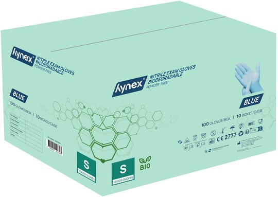 Duurzaam & comfortabel: biologisch afbreekbare nitril wegwerphandschoenen van Hynex Ontdek de nieuwste toevoeging aan het Hynex-assortiment: biologisch afbreekbare nitril wegwerphandschoenen. Met de introductie van deze biologisch afbreekbare handschoenen zetten we een logische stap in onze duurzame koers – zonder concessies te doen aan het ultieme draagcomfort en de optimale bescherming. En zoals je van Hynex gewend bent, geniet je nog steeds van de beste prijs-kwaliteitverhouding. Kies voor milieuvriendelijk gemak, zonder in te leveren op prestaties!Biologisch afbreekbare nitril wegwerphandschoenen De biologisch afbreekbare nitrilhandschoenen vormen een duurzaam alternatief. Dankzij de innovatieve toevoeging van bio-agentia in de formule behouden ze dezelfde betrouwbaarheid als gewone nitril wegwerphandschoenen. Dit betekent dat ze, zodra ze in contact komen met specifieke micro-organismen in de bodem, op natuurlijke wijze worden afgebroken zonder schadelijke resten achter te laten.Voor jouw gebruiksgemak Gemaakt van 100% biologisch afbreekbaar nitril, zijn deze handschoenen poedervrij en oppervlakte-gechloreerd voor extra comfort. Ze bieden een superieure sterkte, verbeterde lekbestendigheid en uitstekende chemische spatbescherming. Nitril heeft als eigenschap dat dit goed vormt naar de hand tijdens gebruik. Hierdoor heb je een goede grip, ook bij het werken in of met natte of geoliede producten of omgevingen. De getextureerde vingertoppen zorgen voor een betere grip bij zowel natte als droge omstandigheden, terwijl ze ook zorgen voor een optimale tastgevoeligheid waardoor ze een precieze aanraking mogelijk maken. Bovendien bieden deze handschoenen betrouwbare bescherming tegen bacteriën en schimmels. De gekrulde rand extra biedt extra gemak bij het aan- en uittrekken, zorgt ervoor dat vloeistoffen niet langs de arm lopen en voorkomt het terugdraaien van de handschoenen. Bovendien zijn ze zowel links als rechts te dragenSterk en betrouwbaar Nitril wegwerphandschoenen zijn sterker dan latex, rubber of vinyl handschoenen. Ze voorkomen besmettingsgevaar tijdens werkzaamheden waar hygiëne voorschriften belangrijk zijn. Werk je in de voedingsmiddelenindustrie, laboratoria, horeca of zorgsector? Dan zijn deze handschoenen de beste keuze! Nitril voor iedereen Verminder de kans op een latex allergie door puur en alleen nitril handschoenen te gebruiken. Tijdens het gebruik wordt huidirritatie voorkomen doordat de nitril handschoenen latex- en poedervrij zijn. Let op: niet steriel en geschikt voor eenmalig gebruik. Draag wegwerphandschoenen niet te lang, probeer ze elk 2 uur te vervangen voor een nieuw paar. Specificaties:?