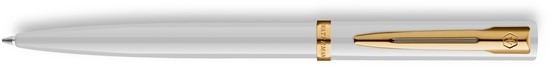 Maak indruk met Waterman Impression, waar verfijnd Frans vakmanschap en zelfverzekerde elegantie samenkomen. De slanke huls en dop, afgewerkt met glanzende witte lak, komen samen om een elegante en blijvende indruk te creëren. De Impression is voorzien van een brede, met goud gecoate dop met ring en de kenmerkende dubbelvertakte clip van Waterman, en is ontworpen om vanaf de allereerste beweging tot gedurfde expressie te verleiden. De nauwkeurig ontworpen balpenpunt zorgt voor strakke, sneldrogende lijnen, terwijl het soepele draaimechanisme moeiteloos gebruik mogelijk maakt met één enkele beweging. Met zijn zorgvuldig uitgebalanceerde gewicht ligt de pen comfortabel in de hand, waardoor een gevoel van evenwicht en controle wordt geboden. Impression is vervaardigd in Frankrijk en weerspiegelt meer dan 140 jaar vakmanschap van Waterman. Hij wordt geleverd in de kenmerkende geschenkverpakking van Waterman en is het ideale pronkstuk - voor uzelf of iemand die altijd een blijvende indruk achterlaat.