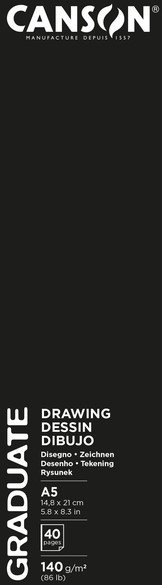 Canson Graduate Sketch & Drawing is een A5 tekenboek met soepele zwarte cover, geniet met 20 vel wit lichtgekorreld papier 140 gr.
