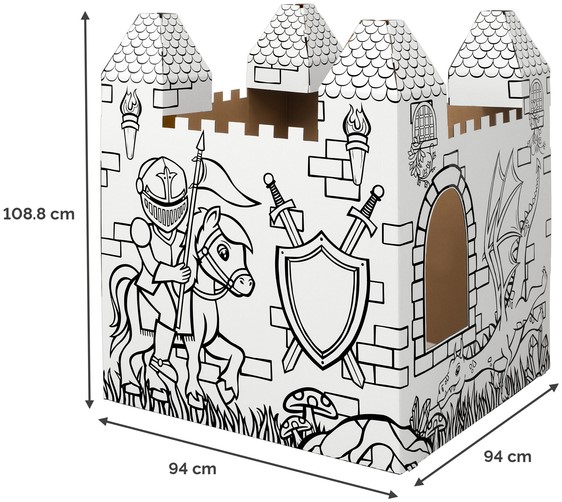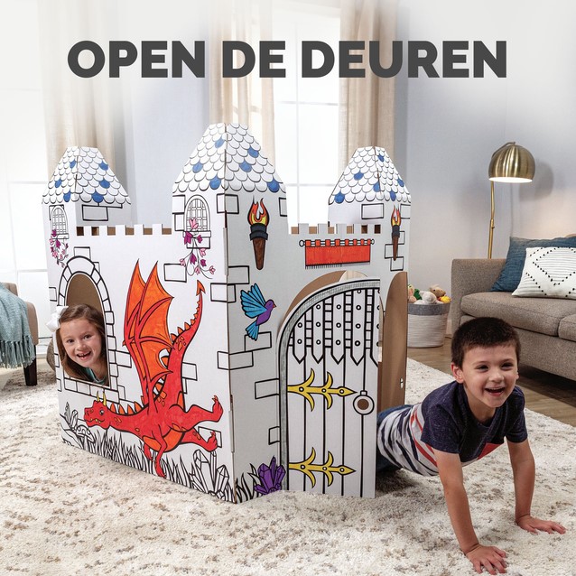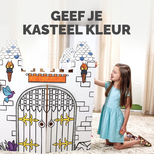 Verander speeltijd in koninklijke avonturen met ons kartonnen en in te kleuren kasteel!