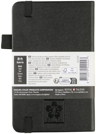 Het Sakura harde kaft notitieboek is een journal van hoge kwaliteit. Het notitieboek heeft 80 vellen FSC-gecertificeerd papier, licht crèmewit van kleur voor optimale leesbaarheid. De klassieke regelafstand (7 mm) zorgt voor comfortabel schrijven met voldoende ruimte om je handschrift gemakkelijk opnieuw te lezen. Het stevige 140 g/m² zuurvrije papier voor het maken van aantekeningen en het bijhouden van gegevens is vrijwel geschikt voor elk type peninkt, waardoor je schrijfwerk niet doordrukt. Het Sakura notitieboek heeft een zwartkleurige harde kaft met afgeronde hoeken, een elastische sluitband, een leeslint en een uitbreidbare pocket aan de achterkant voor het verzamelen van losse aantekeningen. Afmeting: Pocket - 14 x 9 cm