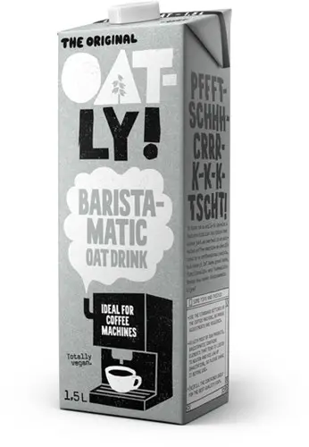 De eerste haverdrank ter wereld die speciaal voor koffieautomaten is gemaakt, is nu eindelijk verkrijgbaar. Voorbij is de tijd dat je een kopje zwarte koffie moest kiezen bij de automaat en vervolgens ergens anders op kantoor Oatly Barista Edition uit een koelkast moest pakken. Je kiest nu gewoon koffie met Oatly en genieten maar. Deze haverdrank is geschikt voor mens én automaat.
