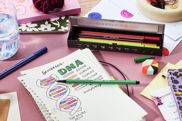 Kleurvariatie en de hoogste kwaliteit. Verkrijgbaar in heel veel prachtige heldere kleuren, waaronder ook neon- en pasteltinten. Deze diversiteit zorgt voor non-stop creativiteit - daarom past de STABILO Pen 68 perfect bij de huidige trends als handlettering, journaling of sketchnotes. Ook fans van mandalakunst en iedereen die liever tekent of schildert zijn enthousiast over de veelzijdigheid van deze hoogwaardige viltstift. De robuuste punt zorgt voor een constante kleurafgifte en is perfect om gemakkelijk krachtige lijnen mee te zetten of grotere vlakken in te vullen. De punt kan tot 24 uur zonder dop zonder uit te drogen - perfect om lekker door te kunnen werken aan je creatieve project. De kleuren kunnen worden gemengd met water voor prachtige aquareleffecten.