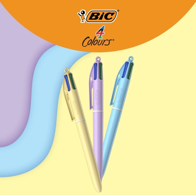 BIC 4 kleurenbalpen Pastel - Met zijn kleurrijke houder in 3 trendy en fancy pastel kleuren is BIC 4 Colours PASTEL balpen een moderne variant op de iconische BIC 4 Colours pen. De BIC 4 Colours balpen werd in 1970 geïntroduceerd en wordt al tientallen jaren gebruikt door BIC-consumenten over de hele wereld. Blauw, zwart, rood en groen: met één klik kunt u van kleur wisselen zonder ooit van pen te veranderen, zodat u aantekeningen kunt markeren om ze beter te onthouden. Deze iconische intrekbare pen is herkenbaar aan zijn ronde vorm, onmiskenbare klik, handige clip en hij heeft een gaatje om hem aan een koord te bevestigen. De BIC 4 kleuren Balpen ideaal voor dagelijks gebruik op school, thuis en op kantoor. Brengt structuur aan in je aantekeningen. Dank je wel BIC!